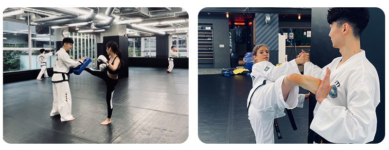 テコンドーは多彩な蹴り技が特徴の近代武道です。武道とスポーツの両面を併せ持ち、ボディメイクや護身術にも有効です。柔軟性のある美しい身体を造りながら、アクションスターのようなカッコいい蹴りを学ぶことができます。